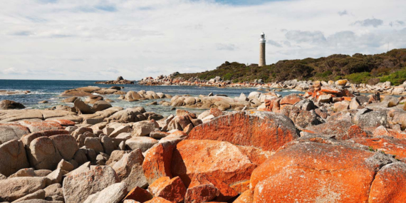 Eddystone Point Lighthouse stands as the entry beacon to the Bay of Fires / larapuna area.
